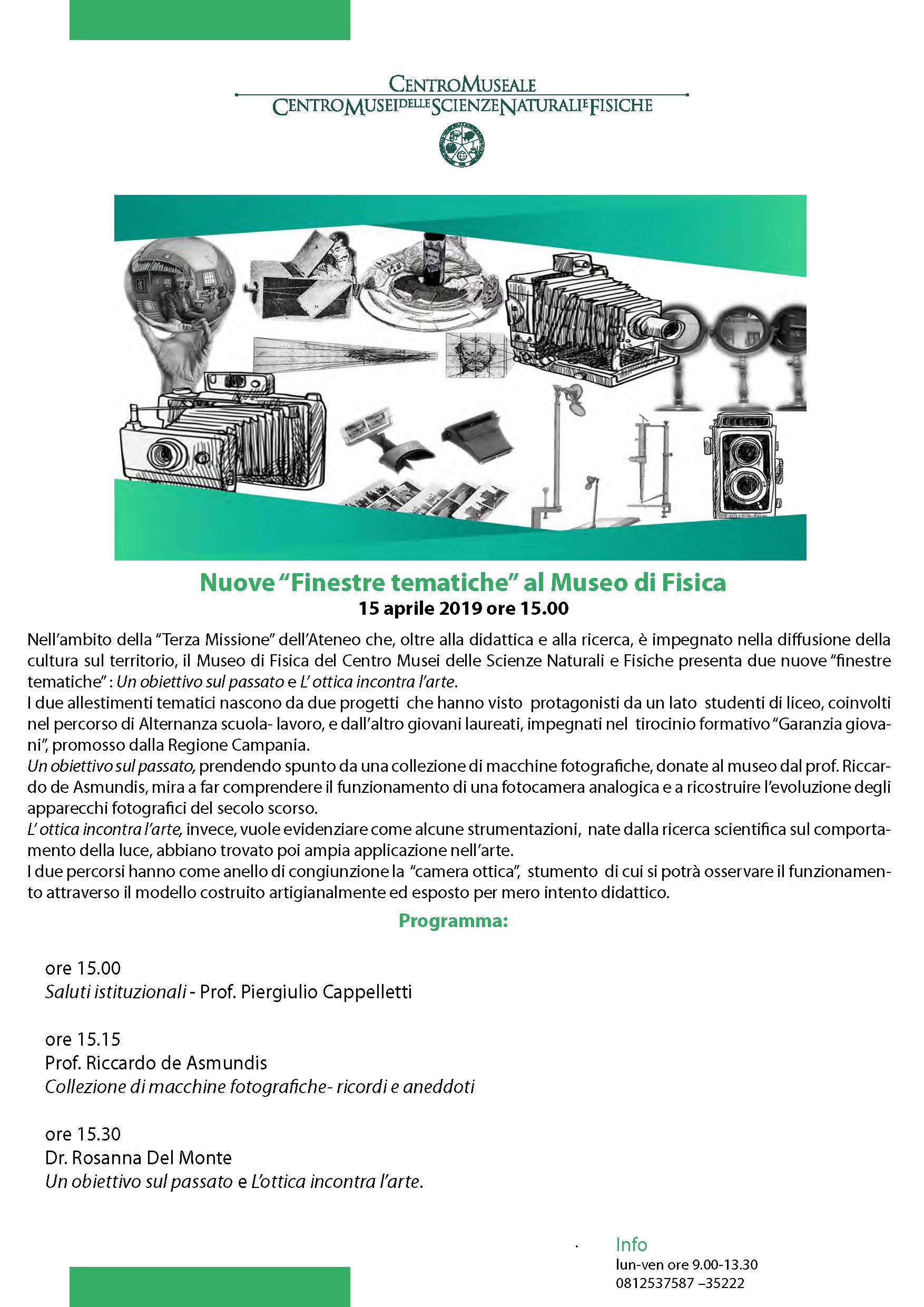 Lunedì 15 aprile alle ore 15:00 presso il Museo di Fisica del Centro Musei delle Scienze Naturali e Fisiche, in Via Mezzocannone 8,