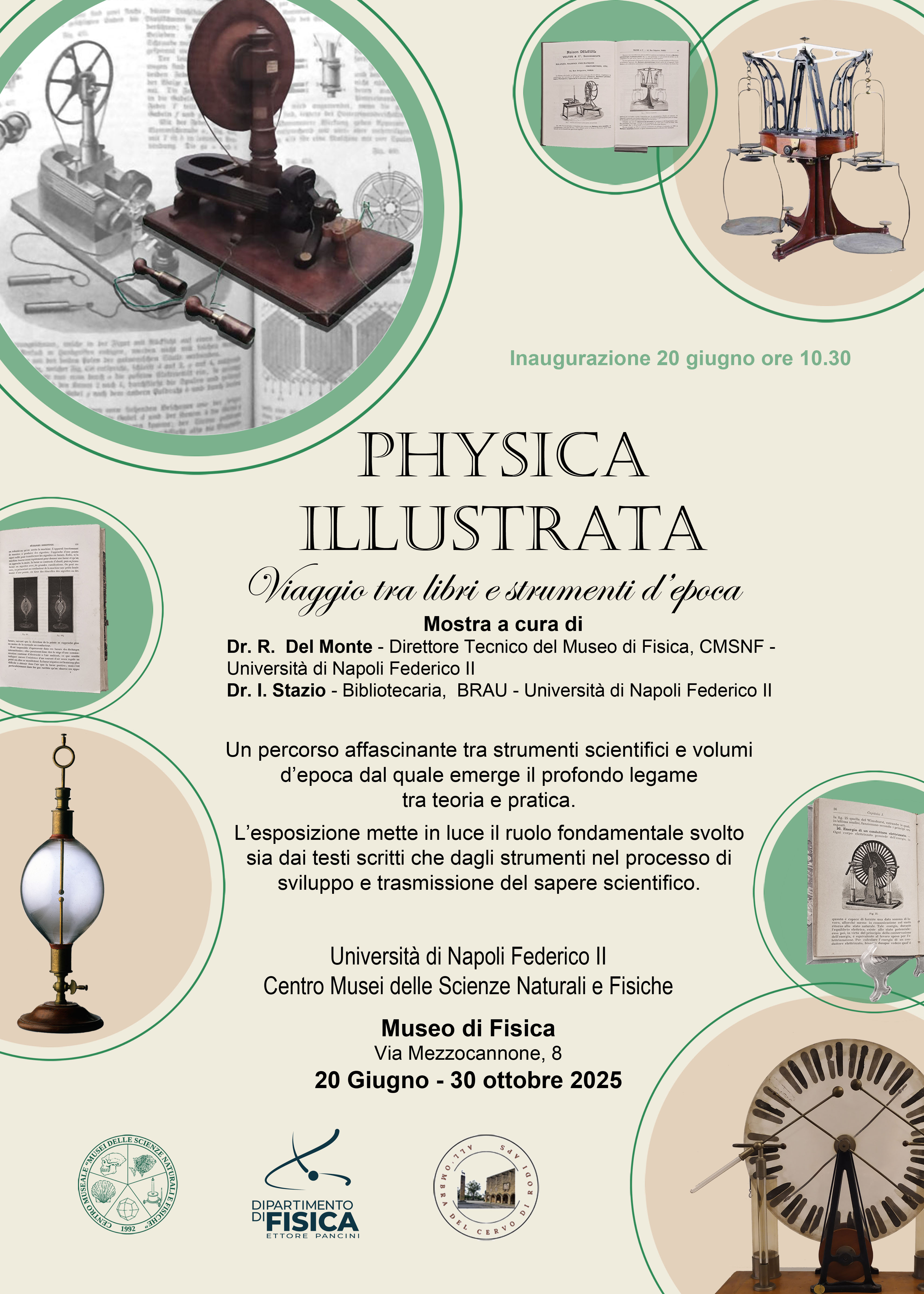 Curata dalla dott.ssa Rosaria Del Monte, direttore tecnico del Museo di Fisica e del CMSNF, e dalla dott.ssa Ivana Stazio, bibliotecaria attualmente alla BRAU e con una lunga esperienza di attività presso la Biblioteca Stroffolini del Dipartimento di Fisica, la mostra crea un percorso affascinante tra le collezioni di strumentazioni storiche in dialogo con alcuni volumi del XIX secolo posseduti dalla biblioteca del dipartimento e conservati nel Fondo Storico.