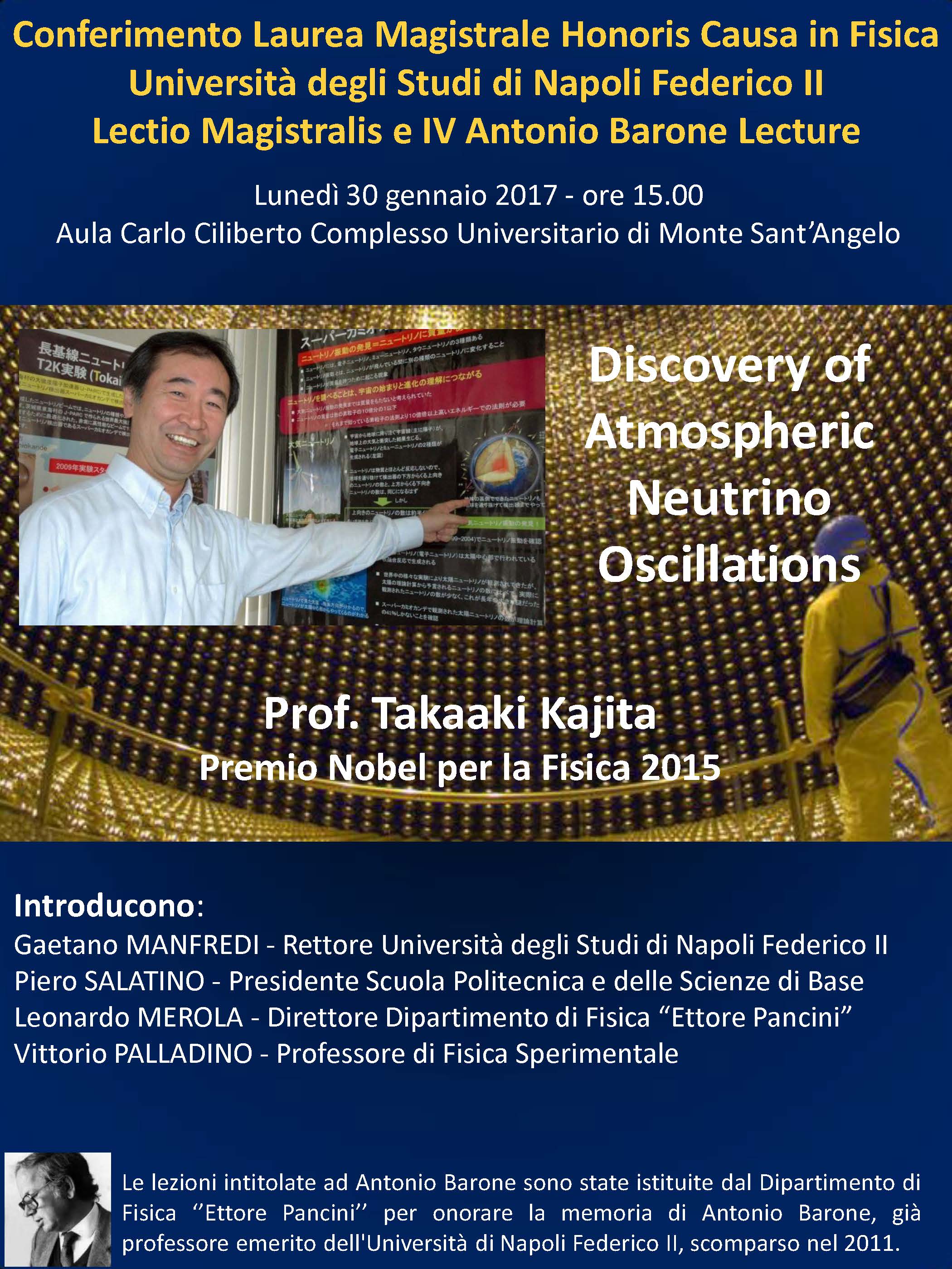 - Il IV colloquium si è tenuto il 30 gennaio 2017, in occasione del conferimento della Laurea magistrale in Fisica Honoris Causa al prof. Takaaki Kajita, premio Nobel per la Fisica 2015. (Apri la locandina dell'evento).
